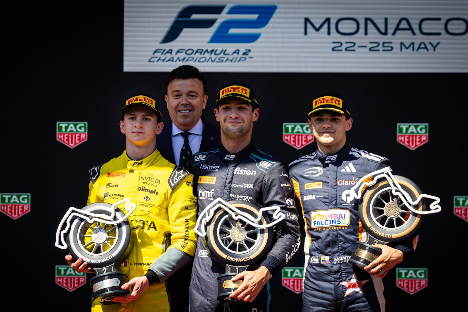 Jak Crawford won the Formula 2 feature race in Monaco on Sunday ahead of Leonardo Fornaroli and Sebastián Montoya in a race that was suspended twice for on-track incidents, including a first-corner pile-up that eliminated seven drivers.