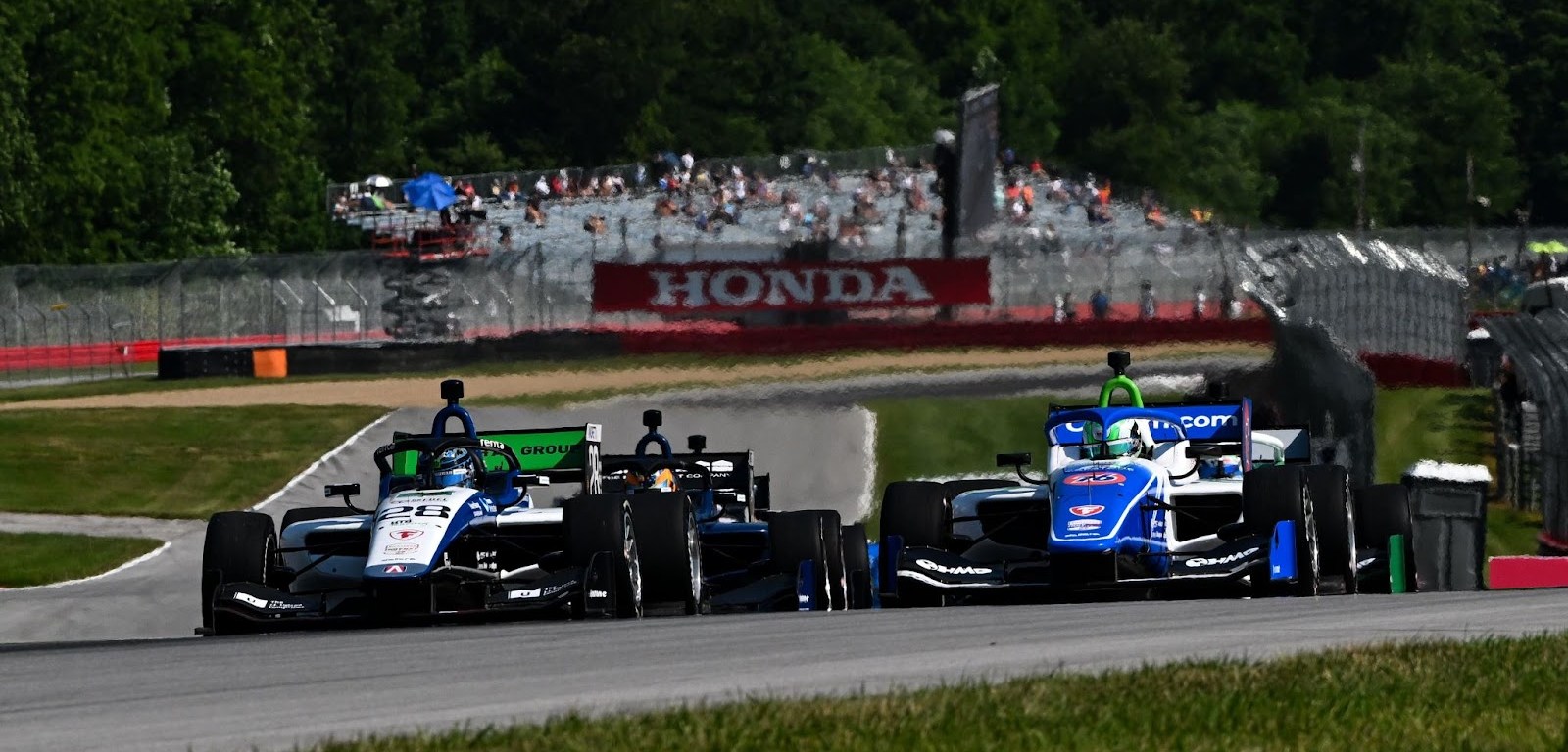 Hauger held the lead at the rolling start as the drivers behind tussled. Hughes pressured Collet for second into the first braking zone at Turn 4, but he came under pressure from Josh Pierson by the time the drivers reached Turn 6. Pierson then tried to hang on around the outside but in doing so opened the door for Salvador de Alba to slip through for fourth at Turn 9.