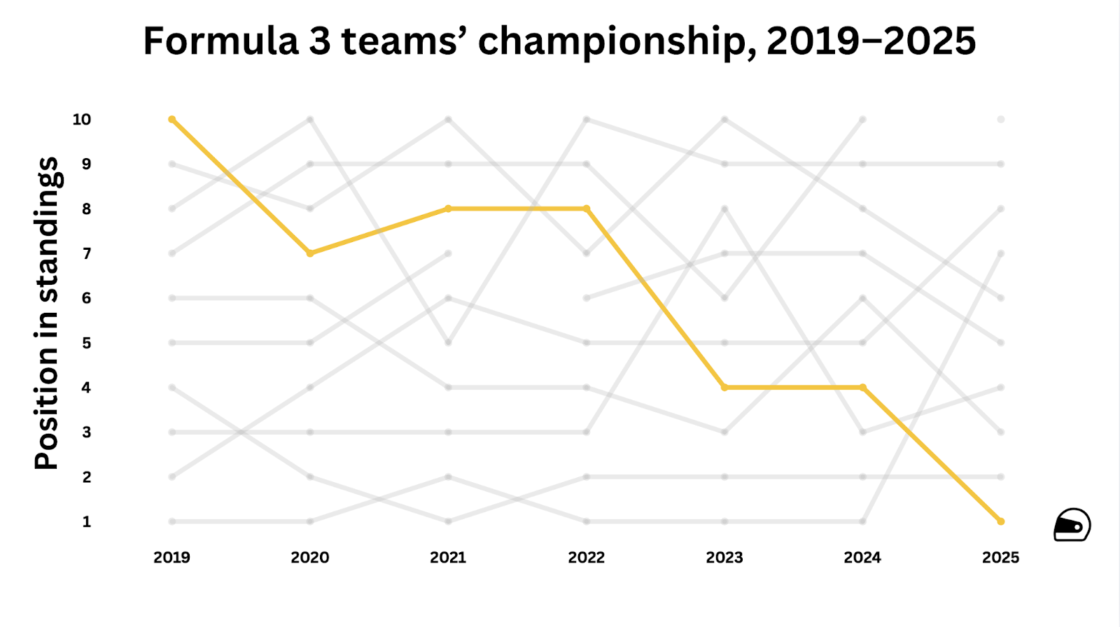Across a decade in F1’s third tier – the team spent four unspectacular years in F3 predecessor GP3 from 2015 to 2018 – the team had never fought for a championship title. The 2025 season was the turning point.