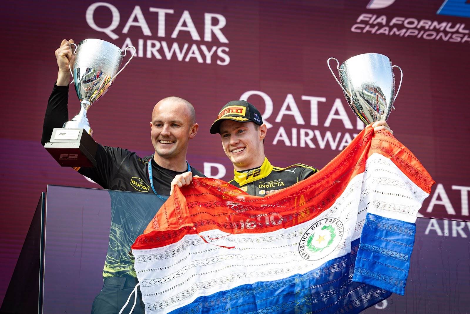 The Mexican driver, one of six drivers taking part in an F2 race for the first time, pulled ahead as teammate Tsolov lost positions. The Bulgarian was fighting hard for sixth place at Turn 2 with Martinius Stenshorne, who had little option but to leave the track to avoid a collision, such was the aggression of Tsolov’s side-by-side defence. The Norwegian gained the position, while Dunne took advantage of Tsolov’s lost momentum from that moment and moved into seventh. Stenshorne later received a five-second penalty for leaving the track and gaining an advantage.