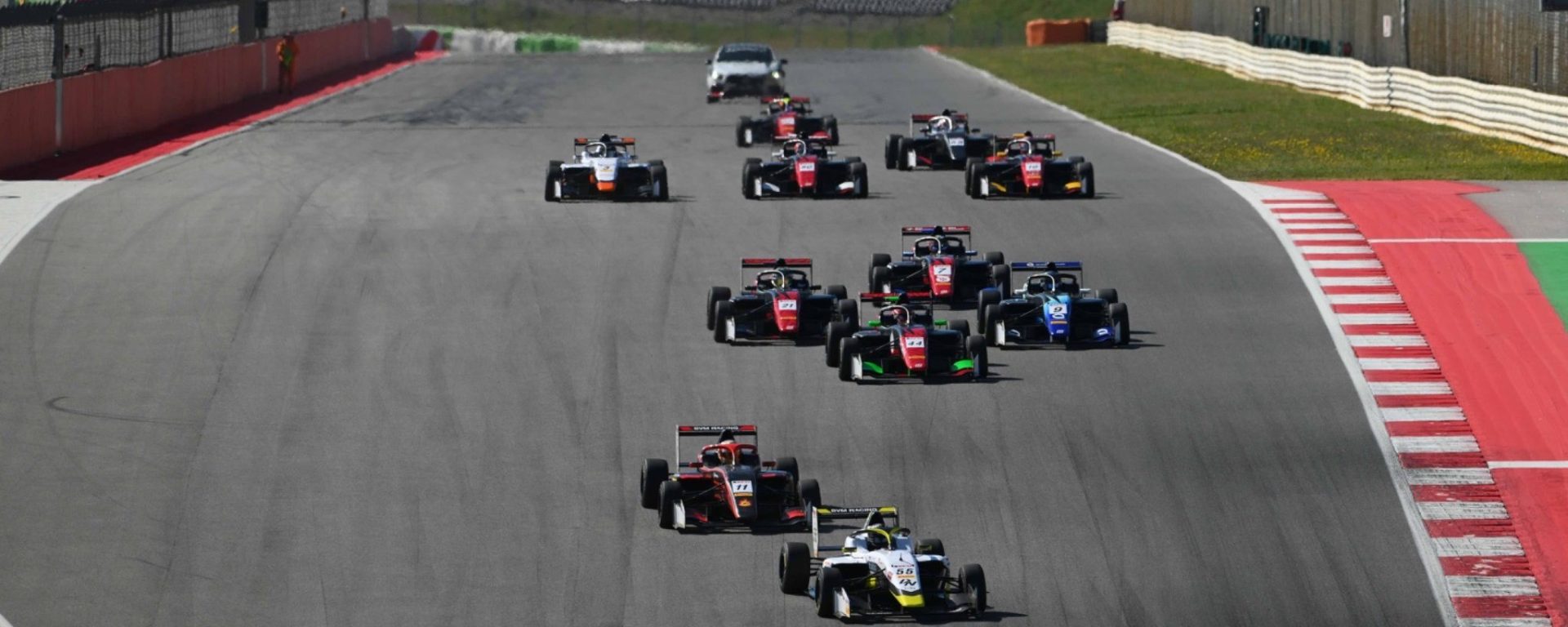 The Spaniard was also on pole for race two, but this time, he was able to lead the way at the start. Pasiewicz, who started second, was spun into the gravel at Turn 1 by Medeiros, which forced an early safety car intervention.